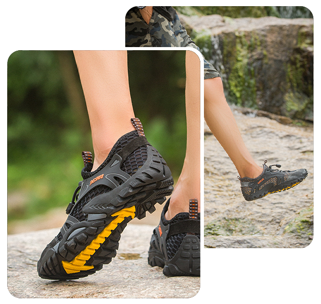 We needed a lightweight quick-drying outdoor shoe to compete in the Finnish Wife Carrying Championships (put that phrase into youtube, it's hilarious) and this fits the bill perfectly. The mesh dries quickly and it fits like a sock, but the soles are very grippy like hiking boots. Great for uneven, wet terrain. Works with or without socks. Wore them to hike right up to the foot of Gljufrabui (a waterfall in Iceland); absolutely ideal for climbing over mossy, slippery rocks or doing the water and mud obstacles in a silly race. Also perfectly comfortable to walk around on pavement all day when it's too hot for serious shoes but you want a little more support than flip flops.