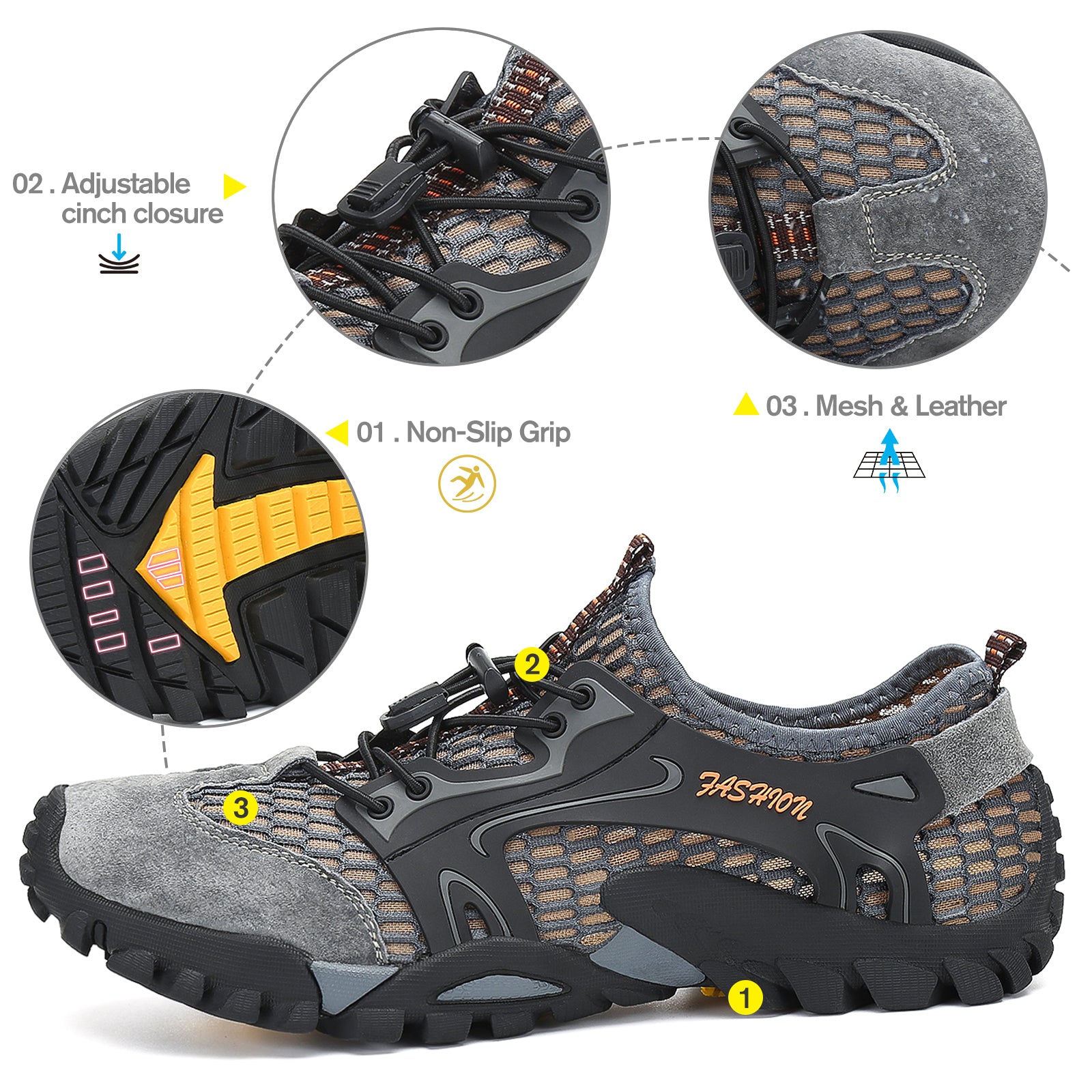 Matériau durable– Tige en mesh et cuir avec semelle en caoutchouc robuste.
