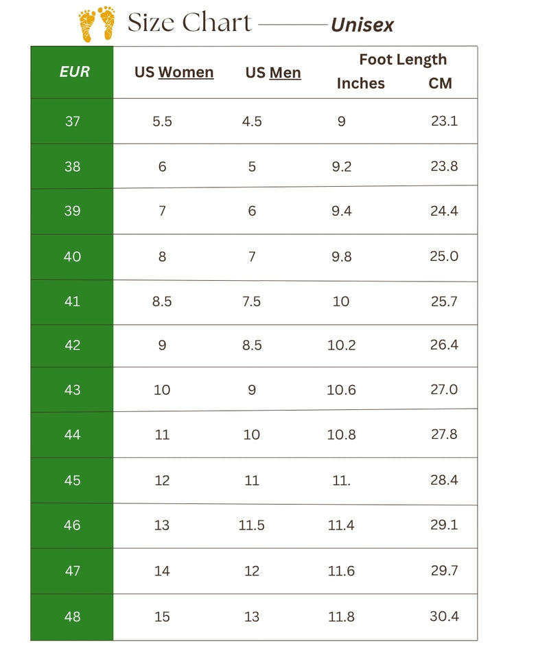 If you normally buy a Euro or UK Size,check out the handy conversion chart beside.