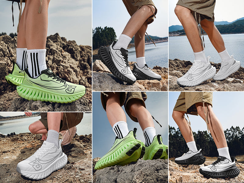 DANNTO Breathable Carbon Plate Running Shoes combine full-length TPU midsole anti-torsion, high-elastic MD cushioning, and a breathable mesh upper. The EVA + rubber outsole with functional zones delivers stable traction on diverse terrains. Pull-tab convenience and lightweight construction make them perfect for running, hiking, outdoor activities, and urban adventures. Stylish 3D textures and heat-cut prints add a modern, dynamic look.